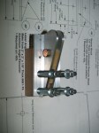 I continued to increase the size of the bushing whole in the bell crank using progressively larger drills. When I got to the last one it jammed and stopped the drill. Now I finished the job with sandpaper on a dowel. A reamer would be nice about now. Using sand paper and a small round file worked okay. I managed to get the holes opened up so that the bushings would fit. Next I assembled the bellcrank in the clevis. I had to dig out my copy of AC43.13 to look up the correct torque specs and the correct method to secure the cotter pin. I seems to work pretty good. Next, on to the second assembly. I almost completed the second assembly. I just need to insert some shims to free up the rotation.