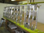 Today I started on the wing rib installation. I began by finding all of the ribs for the right hand wing. I then put the spar on top of two 2x4s that I had screwed to the bench with the forward side up. One by one, I located the ribs and then drilled the pilot holes top and bottom. Next, I marked the centerline on each of the .032 spacers and then drilled the pilot holes in them. Following the .032 spacers were .125 spacers. After drilling all of the pilot holes I turned the spar over and marked the center line for the rivets on the end of each rib. Then I pilot drilled the ribs using the rear spar.