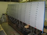 I worked today at transfering the holes in the wing skins to the ribs and rear spar. I began with the top left wing skin and after finishing this I setup for the bottom left wing skin.