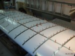 I installed the hinge for the aileron and then proceeded to up drill the remaining holes in the top of the wing to #30. I flipped the wing over and started removing plastic from the bottom side.