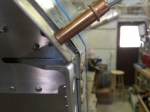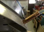 I started by fitting the windshield to see if any trimming was necessary before drilling. I noted that the front corner was still too long. After trimming if refit the windshield and drilled the pilot holes down each side. I also marked the front corners towards the cowling that still needed some trimming. After completing the trimming I fit the windshield again. This time I only needed to use clecos to secure it. Next I drilled the hole through at the front edge of the fire wall. Now I need to figure out the dimpling. I drilled some test strips and have now set up the micro stop to work with both counter sunk washer and my own dimples. I found that I could put the washers in the dimpler just to guarantee they were the same as my dimples in the skin.