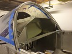 Today I worked on fitting the front canopy bow and matching it to the windshield bow strap. I ended up marking the lower portion of the canopy corner with tape to limit the insertion into the side tubes. The upper portion of the canopy corner needs to have 1/4 in showing to place the canopy bow in the correct place. The final adjustments will be made next summer or next spring when I fit the actually canopy to the frame.