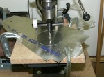 Work progressed today on the nose ribs. They have all been deburred. I did this using a file and Scotch Brite pads. First I filed the edges to smooth them out. Next a chainsaw file was used in the tight radii to remove burrs. Finally, the Scotch Bright pad was used to remove any scratches along the edges left from the cutting process. This also helped to remove burrs from the edges. All of the parts were tested with my fingers to ensure no sharp edges remained. The next step was to stack all of the blanks and drill the tooling holes and the center hole for the fly cutter. The blanks were then unclamped and a large (1/2") drill bit was used to deburr these holes. I then setup the drill press for the 4" lightening hole with the fly cutter and began to cut these holes.